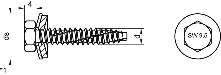 Vis de façade TH - tête hexagonale à bout plat type BZ inox A2 avec rondelle d'étanchéité EPDM diamètre 19mm.